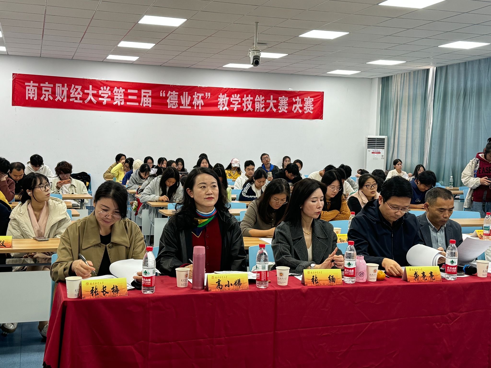 11月15日下午,第三届“德业杯”教学技能大赛决赛在仙林校区博文楼JA105多功能教室隆重举行。江宁高级中学校长张格波、栖霞中学校长吴玉珠、南师附中秦淮科技高中副校长龚亮亮、江宁高级中学福宁路校区副校长黄宣忠、南京市三牌楼小学副校长张缅、南师附中仙林学校小学部副校长刘伟、南京外国语学校明远小学副校长高小娣、原南京市鼓楼区教研员、南京育英外国语学校高级教师王士云、南师附中仙林学校小学部主任张长梅、我们大学生就业与创业指导中心主任李慕原担任评委。全校研究生与本科生代表到场观摩学习。