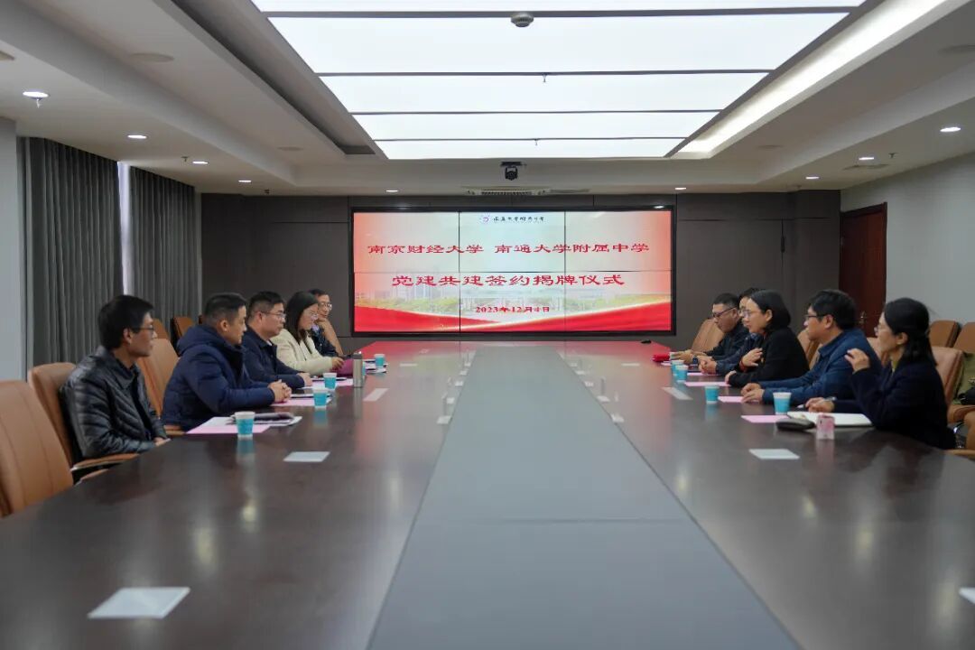 中午,我们与南通大学附属中学党委在南通大学附属中学博约楼319会议室举行党建共建签约仪式。副院长(主持工作)方国昌一行5人,南通大学附属中学校长、党委副书记范永梅、党委副书记、纪委书记沈健、党委委员、副校长,第二党支部第一书记朱振华、党政办公室主任沈涛、团委书记韩慧贤、学生处副主任、第二党支部书记汪淳朴参加了此次签约仪式。方国昌副院长(主持工作)对南通大学附属中学建校10年来取得的成绩表示祝贺,并介绍了我们发展近况以及学院的办学历史、师资队伍、学科建设和人才培养等情况,希望通过合作,拓宽思路,扩大服务面,发挥党建引领作用,探索“党建+”新路径,实现高校和中学的联通,促进双方交流和资源共享,达到共同提升。接着,南通大学附属中学第二党支部书记汪淳朴和我们教工第二党支部成员、院党委副书记孙晓飞分别介绍了各支部的基本情况。双方就组织联建、党员互动、活动互联、资源共享等方面展开讨论并达成共识。最后,双方代表签订党建共建协议并揭牌。今后,双方将以此次共建为契机,本着“优势互补、双赢发展”的原则,扎实推进主题教育,努力把工作做实,做出成效,培养更多优秀学生,促进双方更好发展!